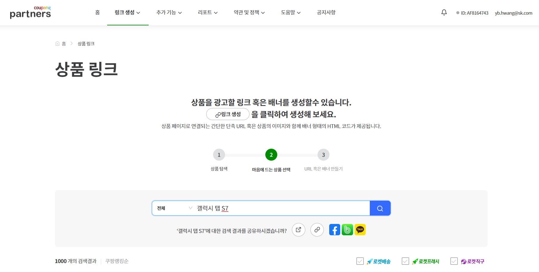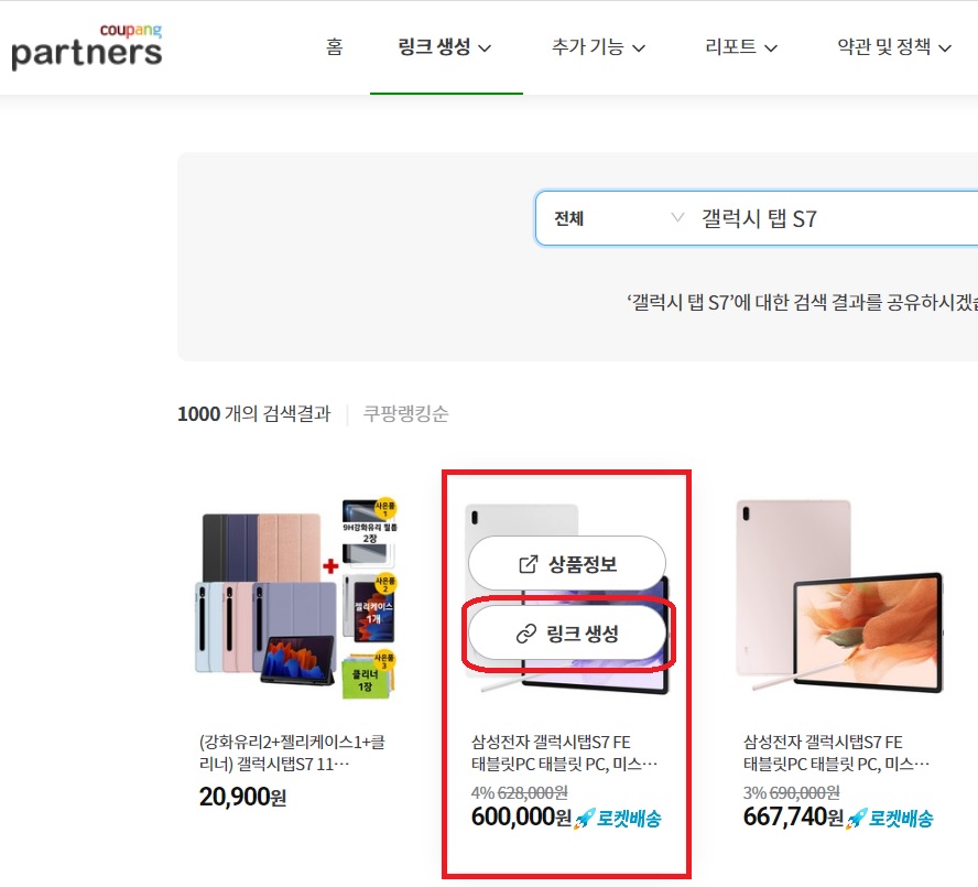 - 쿠팡 파트너스 사이트 접속하고, '링크 생성 - 상품 링크' 선택한다.